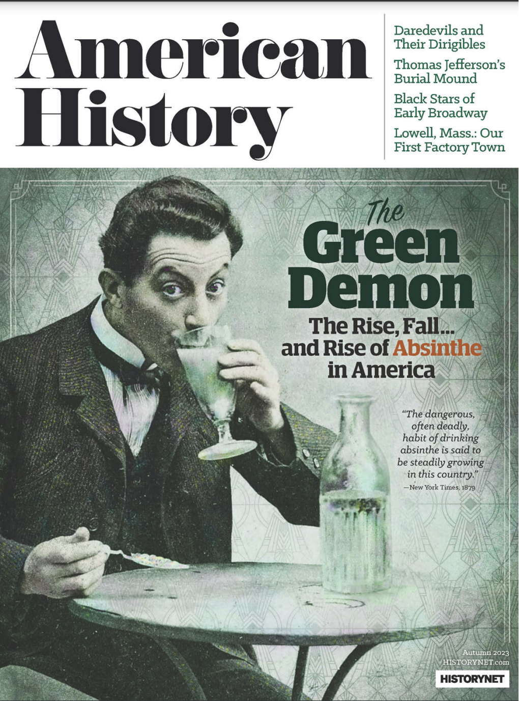 For American History magazine, I wrote a cover story about the rise and fall of absinthe in the United States.